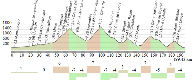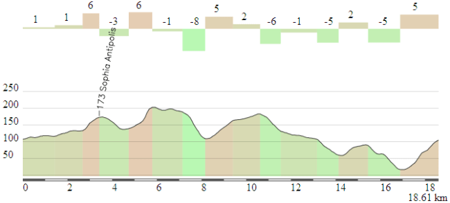 • Super Antibes, np (km 178 / km 197 / Meta):  106 m – 1,5 km – 5,9 %