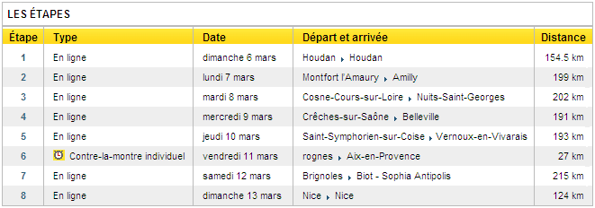 El recorrido del año pasado mantenía las constantes habituales, pero nos pareció un pequeño paso atrás:  claramente inferior a los de 2008 y 2009 y muy similar en estructura y etapas al de 2007, pero sin varias de sus virtudes, como la innovación que supuso aquel trazado en su momento o el diseño de la etapa de Niza.  De todos modos, dejando de lado las ediciones previas,  era un recorrido más que decente, con buenas etapas de media montaña y alicientes en todas las jornadas … de hecho comparado con el resto de carreras estaba por encima de la media (al menos en nuestra opinión).