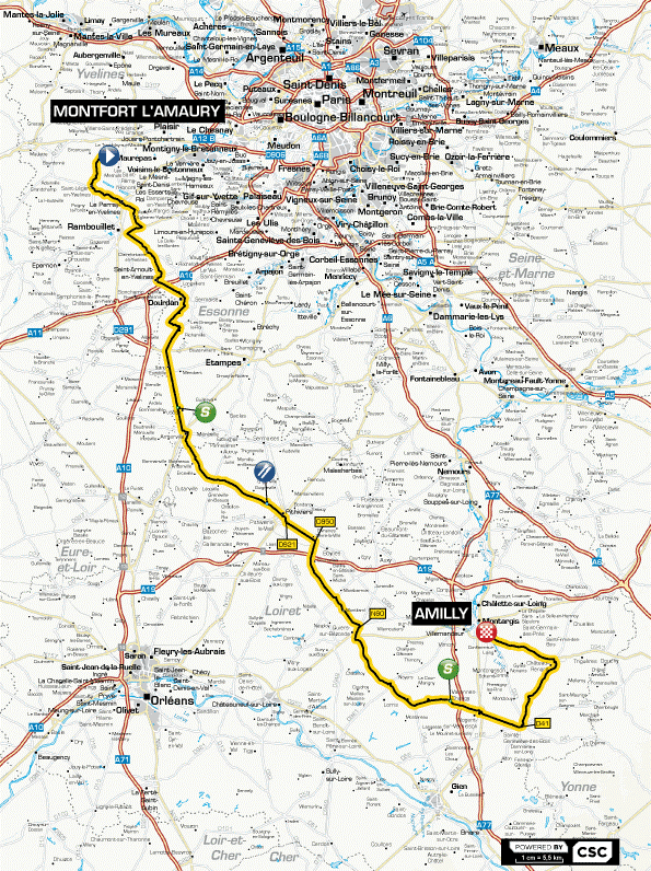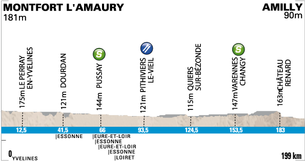 2ª ETAPA (Lunes 7 Marzo):  MONTFORT L´AMAURY – AMILLY  (199 km).  Rutómetro / Últimos 5 km