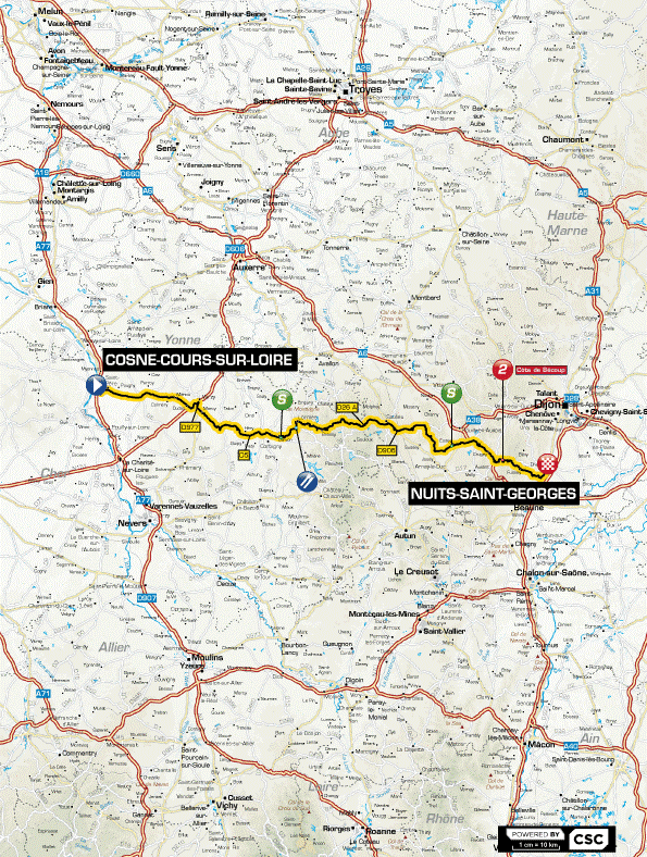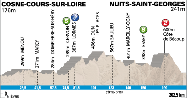 3ª ETAPA (Martes 8 Marzo):  COSNE COURS SUR LOIRE – NUITS SANT GEORGES  (202 km).  Rutómetro / Últimos 5 km