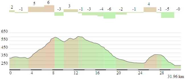 Después de coronar el terreno es muy favorable hasta meta, con un tendido descenso hasta llegar a los dos km finales, ya casi completamente llanos.