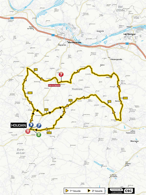 1ª ETAPA (Domingo 6 Marzo):  HOUDAN – HOUDAN  (154,5 km).  Rutómetro / Últimos 5 km