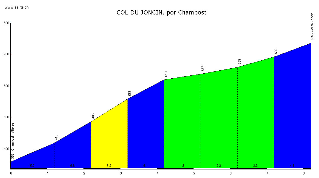 • Col du Joncin, 2ª (km 95):  699 m – 8,1 km – 4,1 %