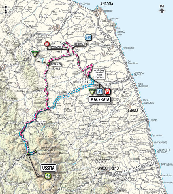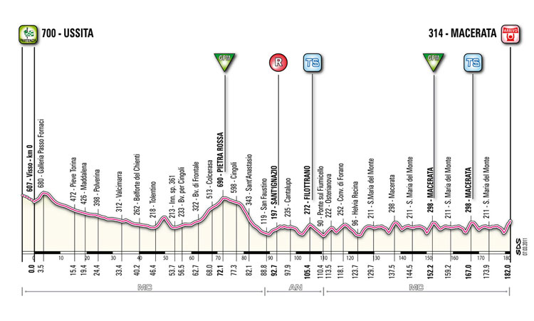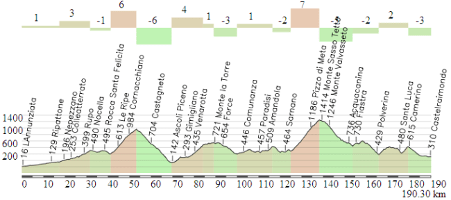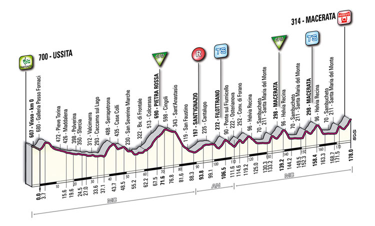 USSITA – MACERATA  (178 km).  Rutómetro / Salida / Llegada