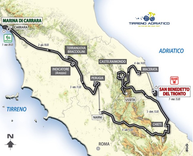 El miércoles 9 de Marzo da comienzo la edición nº 46 de la Tirreno Adriático, una de las carreras por etapas más importantes del principio de temporada junto a la París-Niza, que se está disputando esta misma semana.