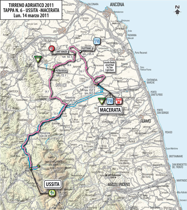 6ª ETAPA (Lunes 14 Marzo):  USSITA – MACERATA  (182 km).