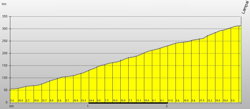 Se puede ver que no es un gran puerto y no tiene grandes rampas, pero subiéndose tres veces de forma consecutiva puede dar juego, y además al ser la última oportunidad de ganar posiciones se deberían producir ataques a la desesperada y descensos a tumba abierta para ganar tiempo a los rivales. Pero al menos servirá para mantener la tensión y la incertidumbre sobre el resultado final hasta el último metro de la carrera.