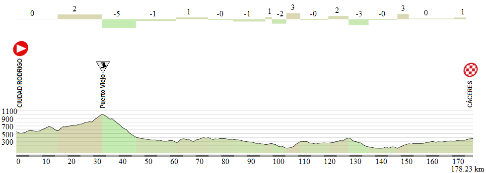 Saliendo de la monumental Ciudad Rodrigo, Conjunto Histórico Artístico y el lugar más cercano a la estación arqueológica de Siega Verde más propicio para una salida, comienza una etapa de nuevo llamada a un sprint masivo en las calles de Cáceres.