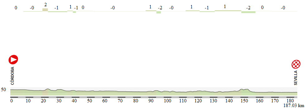 Última oportunidad para los sprinters en esta etapa totalmente llana que sigue casi por completo el curso del Guadalquivir, tan solo separándose de él al final para hacer varios cambios de dirección, aunque al no ser una zona donde el viento sea protagonista el peligro no es elevado. Nos encontramos de nuevo ante un final magnífico para un sprint, con una larguísima avenida final junto al río de tres o incluso más carriles que permitirá ver los famosos «trenes» de los equipos luchar, así como un sprint limpio y con espacio para todos, terminando entre la Torre del Oro y la Maestranza.