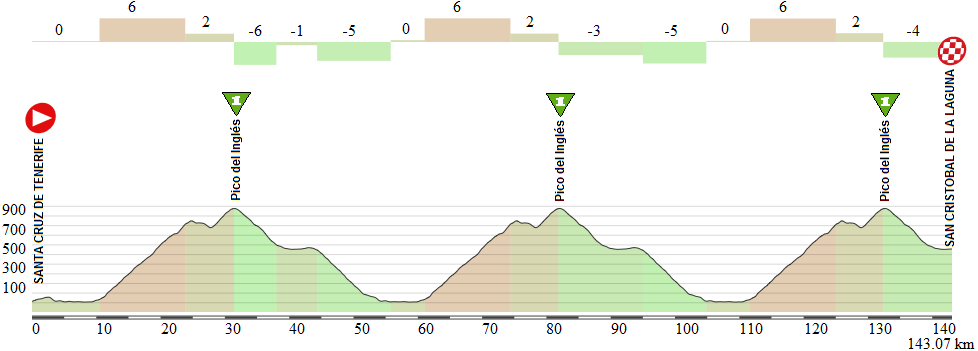 Y eso es lo que aquí proponemos, una etapa de montaña en un circuito de unos 50 Km. que incluye un puerto de 1ª categoría. La salida se sitúa en el Auditorio de Tenerife, símbolo modernos de Santa Cruz diseñado por Calatrava. El protagonísta de la etapa es el Pico del Inglés, de 22,8 Km. y unos 1050 m. de desnivel acumulado que destaca por sus impresionantes vistas entre mar y montaña y el verdor de sus laderas. El puerto comienza con 15 Km. al 5,6% antes de un descansillo de unos 3 kilómetros. El repecho final son unos 3 Km. al 6,6% antes de comenzar la técnica bajada hacia San Cristobal de La Laguna. Aquí se sitúa la meta tras la última ascensión, tan solo 11 Km. después de coronar el puerto.