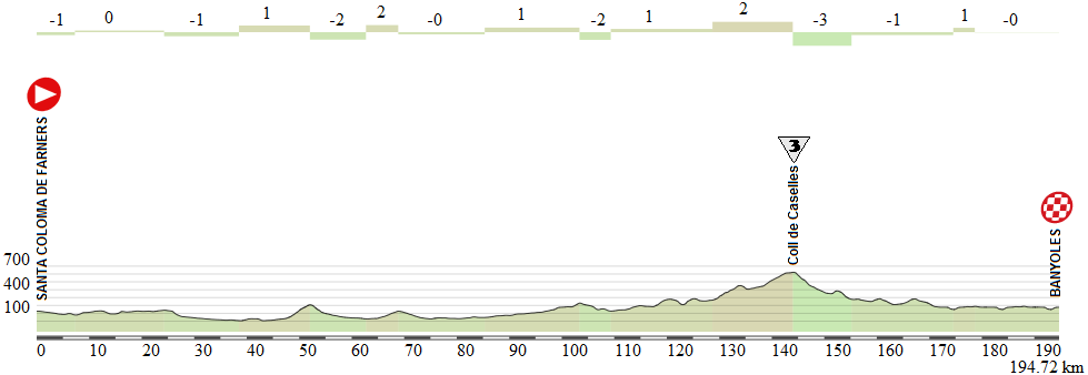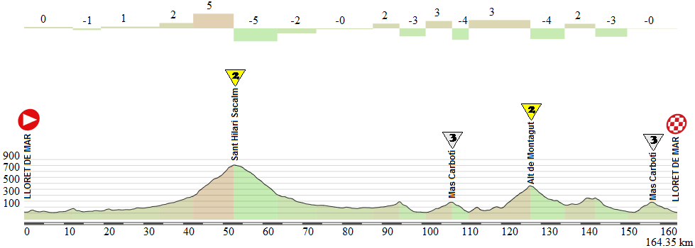 Mantenemos el mismo recorrido que en la etapa oficial. Y es que nos parece una muy buena forma de comenzar la carrera, con una etapa de media montaña que da opción a muchos corredores y a muchos desenlaces diferentes, ya sea el triunfo de una escapada lejana, la victoria tras un fuerte demarraje en el puerto final o que se produzca un sprint reducido en la playa de Lloret.