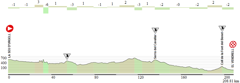 Después de la etapa reina dejamos otra etapa para un sprint, pero con alicientes en su parte final. El recorrido se caracteriza por buscar carreteras secundarias y que resulten interesantes para la carrera, como el tramo entre Talavera y el Port d’Armentera (con tramos peligrosos por el viento, como atestiguan los aerogeneradores que flanquean la carretera) o la carretera de Vespella de Gaiá entre viñedos del Penedés.