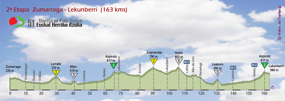 2ª ETAPA (Martes 5 Abril): ZUMARRAGA – LEKUNBERRI (163 km). Perfil oficial / Rutómetro