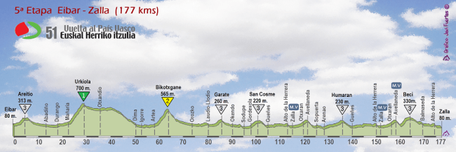 5ª ETAPA (Viernes 8 Abril): EIBAR – ZALLA (177 km). Perfil oficial / Rutómetro