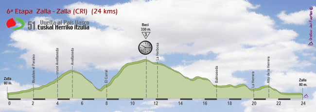 6ª ETAPA (Sábado 9 Abril): ZALLA – ZALLA (C.R.I.) (24 km). Perfil oficial / Rutómetro