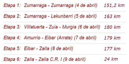 En cuanto a las 3 primeras jornadas, son algo más novedosas respecto a ediciones previas (si bien Azpirotz y llegada en Lekunberri ya se vió en 2007), aunque parecidas entre si, sobre todo Zumarraga y Lekunberri: recorrido de media montaña y un puerto corto pero con buenas rampas a 3 km de la llegada, siendo probable que haya diferencias entre los favoritos … pero de muy pocos segundos.