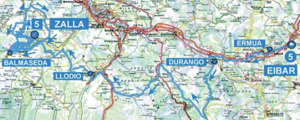 Etapa alternativa Amurrio - Eibar, con Trabakua (2/3), San Miguel (3), Lizarreta (3), Endoia (1/2), Azurki (1/2), Elosua (2) y Karabieta (2). Terminando en Arrate la etapa tendría 187 km