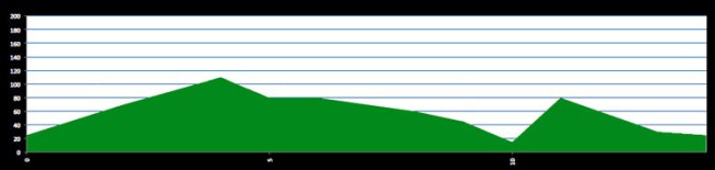 La etapa termina con una larga y progresiva subida, aunque tan suave que en principio no debería ser suficiente para romper el grupo. Tampoco es descartable que la etapa se resuelva mediante una escapada lejana de corredores que ya lleven mucho tiempo perdido en la general. En cualquier caso, atención al km final, con un último repecho de 500 m al 6% (según el rutómetro) muy propicio para corredores explosivos.