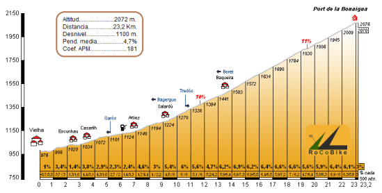 Hemos actualizado la entrada con el perfil definitivo de RoCoBike.com del Port de La Bonaigua por Esterri d’Àneu, y también hemos actualizado por tanto la comparativa con el Galibier.