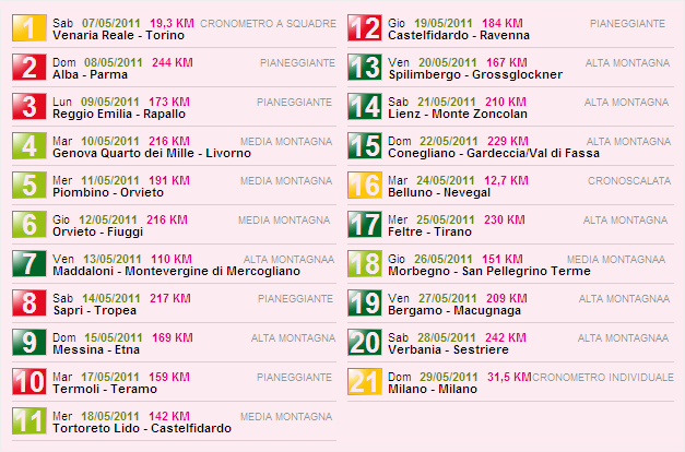 Un aspecto «externo» a deportivo pero muy destacable es la gran calidad de la información que proporciona a los aficionados el periódico oficial, La Gazzetta dello Sport: perfiles de etapa y de los puertos importantes, rutómetros, mapas, últimos km, etc. Todo realizado con buen gusto y profesionalidad, al igual que sucede en el resto de pruebas organizadas por RCS: Tirreno-Adriático, Milán-San Remo, Giro de Lombardía y Strada Bianche (Eroica). Ójala otras carreras siguieran su ejemplo en vez de presentar perfiles exagerados y mal hechos.