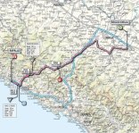 De salida el recorrido es bastante complicado y favorable para la formación de escapadas, teniendo que superar el Valico di Ruta y Madonna delle Grazie (este último en sentido contrario a como se hizo en la etapa previa) antes de la larga e irregular ascensión al Passo del Bracco, con varios km al 7% pero también muchos descansillos.