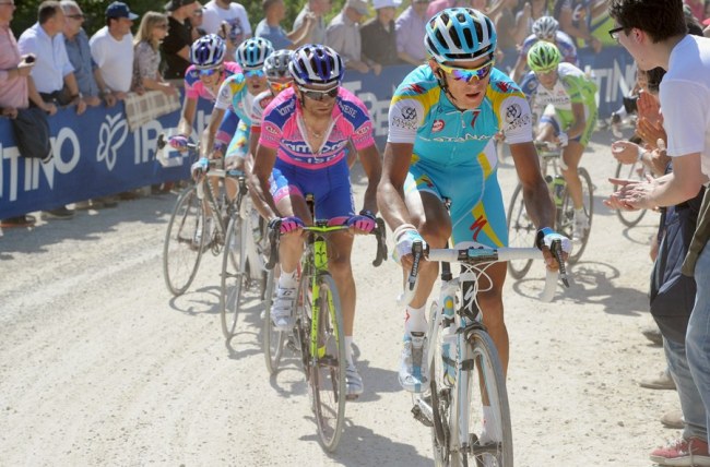 Y sobre el sterrato, los tramos incluidos en el Giro son un porcentaje tan pequeño del kilometraje total que no hay riesgo de desnaturalizar la carrera, que naturalmente sigue siendo de ciclismo en carretera y no de MTB o ciclocross.Y dan mucha vidilla al asunto. Claro que se puede perder el Giro en un tramo así, igual que en un abanico en una etapa llana, por culpa de una caída, por culpa del tiempo (que se lo digan a Indurain…). Pero amigos, es que esto es parte del juego!