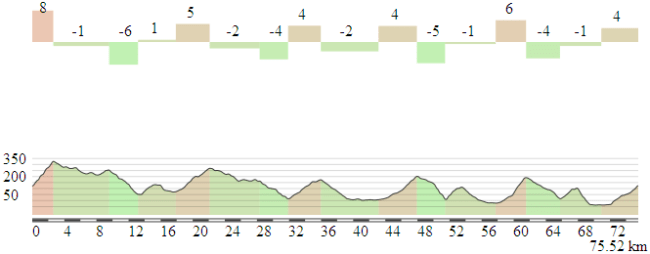 Los 75 km finales de la etapa son un auténtico «serrucho», con muy poco terreno llano.