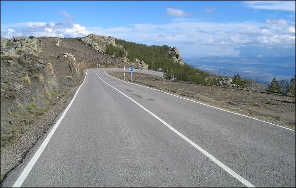 Junto al encadenado Creueta-Pradell-Pal y algunos de Asturias (p.ej. Cobertoria-Trobaniello-Maravio), estas carreteras de los Filabres quizá nos den las mejores opciones de etapón alpino de la península. En un recorrido de vuelta que terminé hace poco, incluía una etapa por aquí como último juez de la carrera. Creo que el recorrido es el más «alpino» que podríamos hacer para ver movimientos de lejos, al estilo GIro:
