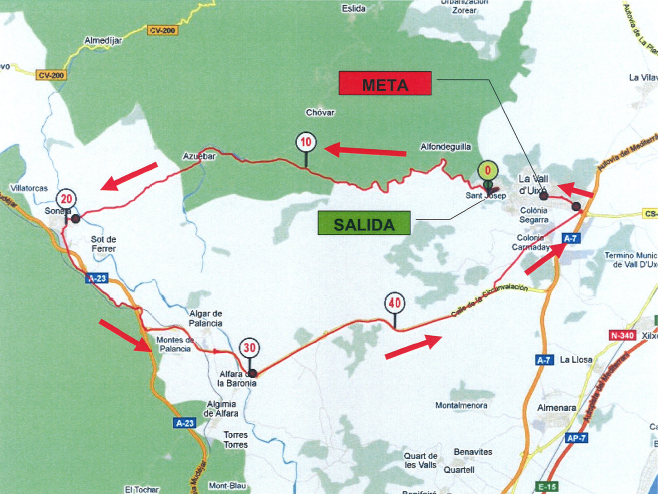 Jueves 24 de Junio: Coves de Sant Josep – La Vall d´Uxió (44,5 km) (C.R.I.). Rutómetro y mapas / Horario de salida