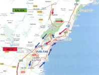 Otra posibilidad, quizás más lógica teniendo en cuenta el tipo de carrera, sería no dar un rodeo inicial e ir directamente hacia el Desierto Las Palmas y Castellón de La Plana, pudiendo hacer 5 pasos por el puerto para un kilometraje total en torno a los 220 km.