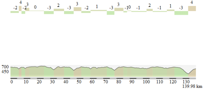 Ascensiones a pequeñas cotas alistanas, como Puercas, Abejera y Miño Cuevo, y 50 km finales muy llanos. Si se hubiera querido hacer una etapa un pelín más selectiva en el recorrido intermedio (el final en Benavente obliga a tener bastante llano final) se podría haber entrado un poco más en Aliste, cuyo corazón es más pestoso, y cambiar el esquema final (ascensión a Miño Cuevo o Sarracín y llaneo por el Valle del Tera) por la ascensión a Campanario (4 km al 4%) y una aproximación a Benavente por el terreno entre los ríos Esla y Tera, más pestoso que el valle del Tera. Por ejemplo: http://tracks4bikers.com/tracks/show/60458