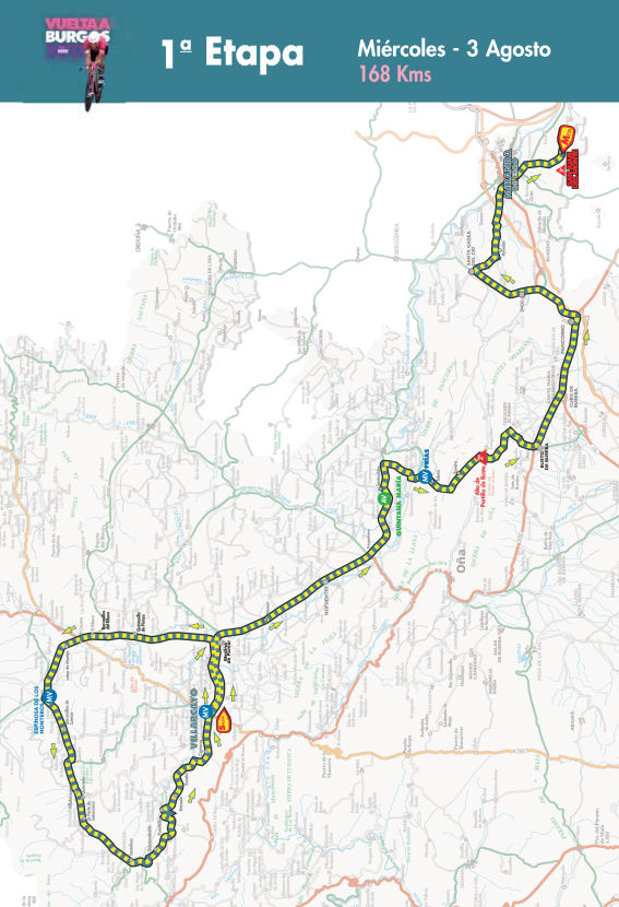 1ª ETAPA (Miércoles 3 Agosto): VILLARCAYO – MIRANDA DE EBRO (SAN JUAN DEL MONTE) (168 km). Rutómetro
