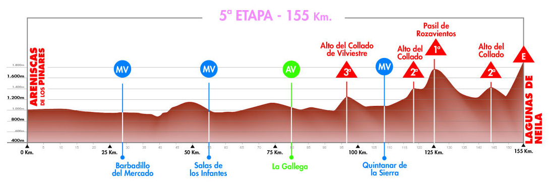 5ª ETAPA (Domingo 7 Agosto): ARENISCAS DE LOS PINARES / VILVIESTRE DEL PINAR – LAGUNAS DE NEILA (155 km). Rutómetro