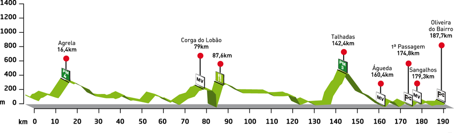 La carrera vuelve hacia el norte, nuevamente hacia las inmediaciones de la ciudad de Oporto. Parece como si los organizadores quisieran volver sobre sus propios pasos, desandando el camino recorrido en la primera etapa… con un pequeño matiz, esta vez estamos ante una etapa de media montaña bastante exigente. Hasta 6 puertos puntuables se superan en esta jornada (2 puertos de 4ª, 3 de 3ª y el final en un 2ª categoría). Los primeros 80km de etapa no presentan ni un solo respiro, aunque en general todo el trayecto es muy quebrado, perfecto para que las fugas se consoliden. Los equipos de los favoritos tendrán que tener en cuenta esta etapa para evitar las tan temidas “fugas bidón”. El puerto final, el Monte de Nuestra Senhora de la Assunçao, con 6,3km al 6,2% de pendiente media, permitirá valorar las fuerzas de los candidatos al podio y en su caso resolver la fuga suponiendo que ésta llegue.