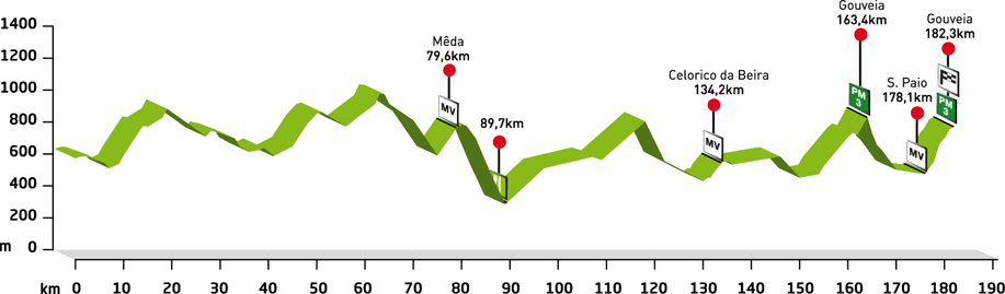 No obstante, aunque la etapa puede considerarse en general llana, cuidado con el final ya que se dan dos vueltas a un circuito en torno a Gouveia para superar en dos ocasiones el Alto de Gouveia, una pequeña subida de 3ª categoría con tramos de pavé que dará mucho interés a la parte final de la etapa. La subida se realizará por dos sitios distintos, siendo la segunda ascensión la más exigente, con 4km finales al 4,5% de pendiente media.