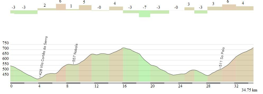 Etapa más o menos tranquila, con una cota de 4ª (Alpedrinha) y otra de 3ª (Serra do Muradal) hasta que a 15km de meta, y precedida de una fuerte bajada, se inicia la subida al mencionado Alto de Quintâ, un tercera bastante explosivo de 2km de longitud al 8,2% de pendiente media. A partir de aquí se afrontan unos 6km de falso llano ascendente, antes de encarar la definitiva bajada hacia Sertã, donde acaba la etapa.