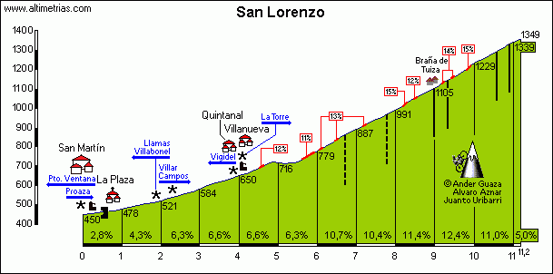 La dura vertiente este de San Lorenzo, con cierto parecido a la famosa Marmolada (Passo di Fedaia), por fin se estrena en la Vuelta. Click para ver una descripción detallada.