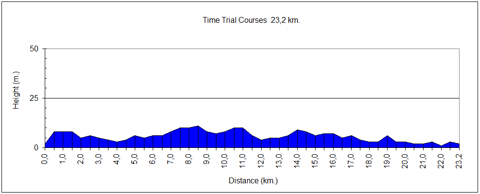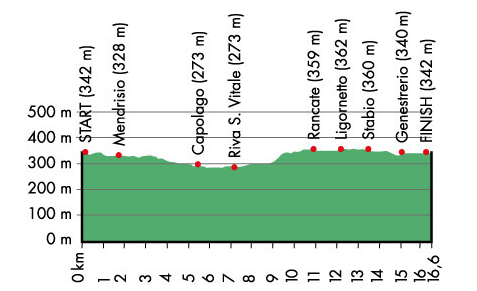 Una contrarreloj muy favorable a los especialistas, donde salvo que haya unas condiciones meteorológicas muy adversas, como lluvia fuerte o viento (aunque al ser un recorrido de ida y vuelta esto último no tienen tanta importancia), lo más probable es que los primeros «vuelen» por encima de los 50 km/h, marcando un tiempo final en torno a los 55 minutos.