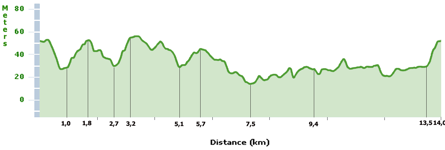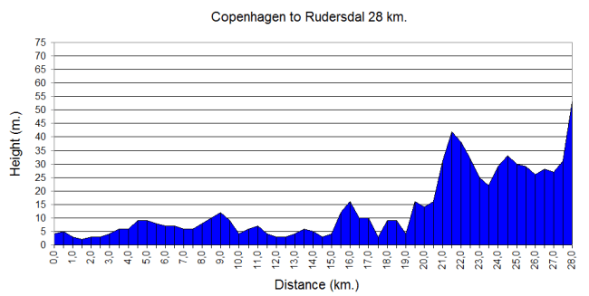 Una vez que se inicie la carrera en Copenhagen City Hall Square, en pleno «corazón» de la capital danesa, los corredores tendrán que dirigirse hacia el norte en un trayecto de 28 km que, pese a lo que aparenta el perfil oficial, es bastante llano, con el único repecho de importancia justo antes del primer paso por la línea de meta, ya dentro del circuito final. Eso si, durante varios km la ruta irá completamente paralela a la costa, existiendo la posibilidad de abanicos si sopla viento de costado y hay equipos con ganas de «liarla», aunque a estas alturas de carrera no debería tener mayor relevancia.