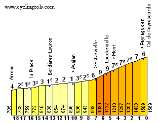 Portillón, Mente y Port de Balés (allí donde Andy Schleck tuvo el famoso problema mecánico en 2010) quedarían como previo a la subida final a Peyragudes, una estación invernal cercana al Col de Peyresourde donde terminará la etapa aunque no está claro el sitio exacto, ya que la estación engloba 2 zonas distintas a las que se accede por diferentes carreteras.