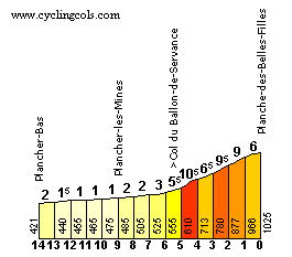 -Al menos un puerto de segunda o primera categoría en Vosgos (el final en alto de Belles Filles, un puerto corto pero bastante duro con 5,5 km al 8,2%) que llega relativamente pronto, en la 7ª etapa.
