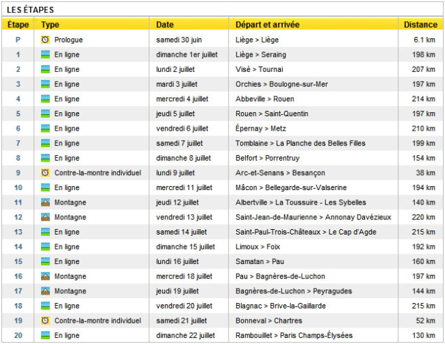 Listado de etapas del Tour 2012. *No están marcadas las jornadas de media montaña y una de las de alta montaña.