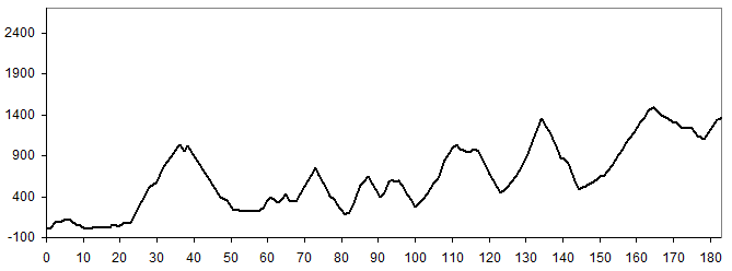 Las dificultades comienzan pronto, primero con el Alto de Villayón de 6Km. al 6,2%. Luego llega uno de los colosos de Asturias, el Puerto de la Marta. Podríamos dividir la ascensión en dos partes. Los primeros 16 Km. nos llevan hasta el Alto de Bustantigo (1.033 m). Esta primera parte es muy exigente (8,3% de pendiente media en los tramos ascendentes, máximas del 18%) y alterna largos tramos de subida con fuertes descensos. Se desciende durante 2 Km. para afrontar la segunda parte del puerto: 7 finales más llevaderos por una zona abierta de pastos. Esta irregularidad hace que el desnivel total acumulado asuste: 1430 metros.