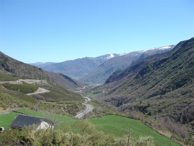 Tras bajar y un par de repechos llegamos a Corbón del Sil para comenzar a subir al Puerto de Valdeprado. Se trata de un puerto largo, tendido y regular, de 9,6 Km. al 4,5%, aunque contando el tramo anterior se totalizarían 13 Km. subiendo. Le sigue una rápida bajada para afrontar sin solución de continuidad las rampas del Puerto de Cerredo, 5,2 Km. al 6%.