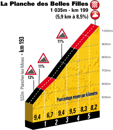 El Tour anunciaba que en esta edición tendría más protagonismo de Macizos, como este de los Vosgos. Sin embargo, con el trazado de la etapa original de Planche des Belles Filles casi evita por completo adentrarse en estas montañas y sus puertos, diseñando una etapa con poco más que la subida final.