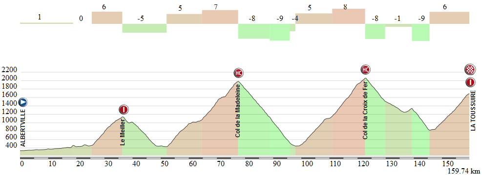 Me gustaria añadir que para la etapa de La Toussuire, existe tambien la possibilidad de subir el col du Mollard por su vertiente oeste (que no llega exactamente al puerto sino a Albiez-Montrond). Este ultimo se encadena perfectamente con la descida de la Croix de fer y recuperaria el recorrido original poco despues la cima del Mollard.