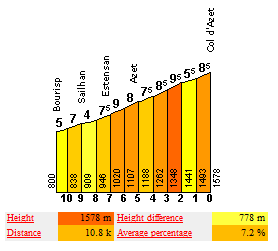 El Col d’Azet es un gran añadido para la etapa (los 3,6 km iniciales serían por otra variante)  Perfil de cyclingcols.com