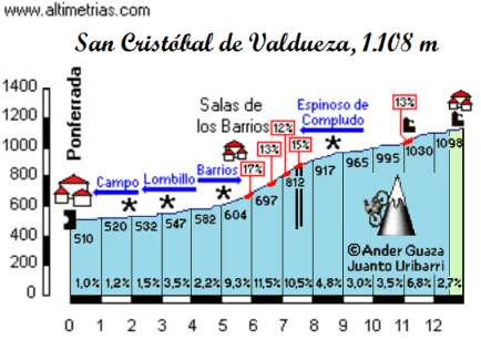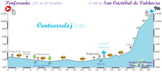 1. Ya se rumoreaba desde hace tiempo pero el pasado viernes hubo confirmación oficial: la prueba contrarreloj no incluirá la subida a San Cristóbal de Valdueza, si no que tendrá un recorrido más favorable para los rodadores al acabar en Ponferrada, aunque con los repechos de Montearenas y Compostilla endureciendo la parte final.