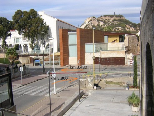 El Centro de Interpretación de la Muralla Púnica. Se pasaría en 2 momentos: viniendo de la plaza Bastarreche (km 3,48) y bajando del Campus de la Muralla (km 5,8)