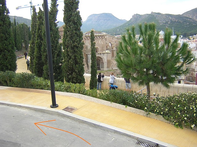Plaza de San Ginés: giro derecha C/San Antonio El Pobre dirección Plaza San Francisco (km 3,96) y giro derecha en  inicio subida al parque Torres y Teatro Romano (km 4,36)